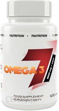 Właściwości 7NUTRITION Omega 3 100caps:Przyczynia się do prawidłowego funkcjonowania sercaWspomaganie układu odpornościowegoPrzyczynia się do utrzymania prawidłowego widzeniaPrzyspieszenie metabolizmuWsparcie serca i układu krwionośnegoPoprawa funkcjonowania mózguprzyczynia się do utrzymania prawidłowego ciśnienia krwiPrzyczynia się do utrzymania właściwego poziomu trójglicerydówOmega 3 100 kapsułek od 7Nutrition – kwasy tłuszczowe omega-3 wspierające pracę układu sercowo-naczyniowego!7NUTRITION Omega 3 to suplement diety zawierający wysokogatunkowy koncentrat olejowy, źródło kwasów tłuszczowych (EPA i DHA) z rodziny omega-3 w postaci kapsułek miękkich.Przyjmowanie kwasów omega-3 wykazuje korzystny wpływ na pracę układu sercowo-naczyniowego (korzystne działanie występuje w przypadku spożywania łącznie 250mg EPA i DHA dziennie). Stosowanie ich w diecie wpływa na obniżenie poziomu trójglicerydów oraz podwyższenie korzystnego cholesterolu HDL i zmniejszenie krzepliwości krwi, co wpływa ochronnie na pracę serca i układu krążenia. Kwasy tłuszczowe omega-3 są składnikiem diety wspomagającej odchudzanie.Sposób użycia Omega 3 7Nutrition 100 kapsułek:Należy spożywać 1-2 kapsułki raz dziennie podczas posiłku.UWAGA!!! Nie należy przekraczać zalecanej dziennej porcji do spożycia. Produkt nie może być stosowany przez osoby uczulone na którykolwiek z jego składników. Przechowywać w miejscu niedostępnym dla małych dzieci. Przechowywać w miejscu suchym w temperaturze pokojowej w szczelnie zamkniętych opakowaniach.Składniki Omega 3 7Nutrition 100 kapsułek:Wielkość opakowania: 100 kapsułekWielkość porcji: 1 kapsułkaIlość porcji w opakowaniu: 100olej rybi (źródło kwasów tłuszczowych omega3); otoczka (żelatyna, woda, substancja utrzymująca wilgoć – glicerol), D-alfa-tokoferol (Witamina E);Składniki aktywne W porcji 1 kapsułka %RWS W 2 kapsułkach %RWSOlej rybi1000 mg * 2000 mg *w tym EPA 330 mg * 660 mg *w tymDHA220 mg * 440 mg *10% inne kwasy omega3 100 mg * 200 mg *Witamina E12 mg 100% 24 mg 200%%RWS – referencyjna wartość spożycia