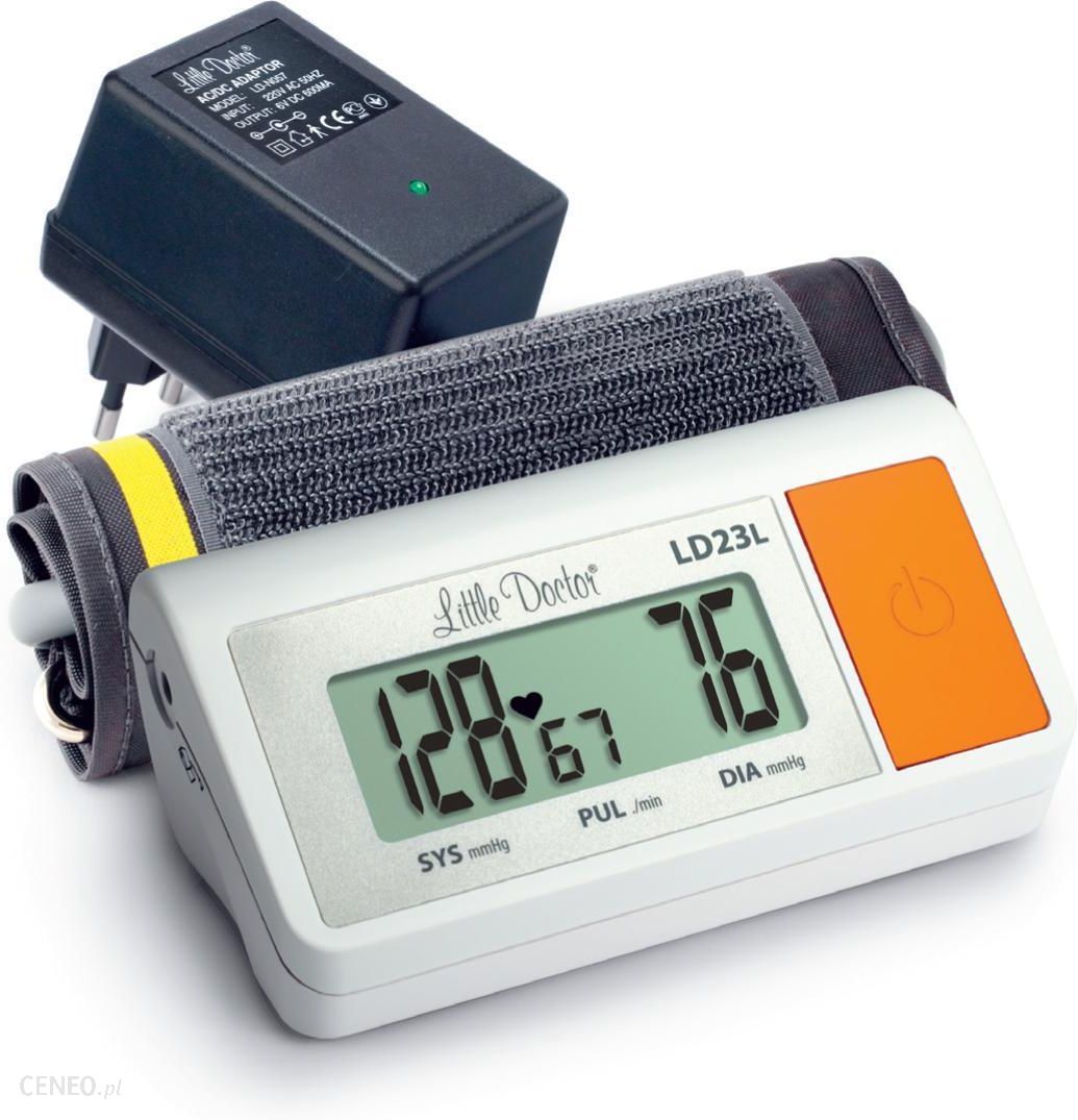Model stanowi wariant urządzenia LD-23. Jest wzbogacony o bardzo duży mankiet – zmieści się na ramę w wymiarach 32-43 cm! Dodatkowo mankiet zawiera oznaczenia, pomagające w poprawnym założeniu. Ciśnieniomierz LD-23L zawiera wszystkie niezbędne atrybuty: prostotę, obsługę jednym przyciskiem, duży wyświetlacz, niewielkie rozmiary.Tak jak LD-23 ten model mierzy tylko ciśnienie, nie zawiera dodatkowych funkcji. Dzięki temu idealnie nadaje się dla osób starszych, nieobytych ze skomplikowanymi urządzeniami elektronicznymi.W zestawie znajduje się zasilacz. Dobre rozwiązanie dla pacjentów poszukujących sprzętu do domowego użytku – niezależnie od wieku!Ponadto urządzenie objęte jest 7 letnią gwarancją.Do najważniejszych cech ciśnieniomierza LD-23 należą:Prosta obsługa jednym przyciskiem.Dźwiękowa sygnalizacja etapów pomiaru.Wydajność – do 1000 pomiarów na jednym komplecie baterii.Mankiet dostosowany jest do ramienia o obwodzie 32-43 cm – niezawierający lateksu i nie uczulający!!!Algorytm Fuzzy uwzględnia indywidualne cechy rytmu serca.Ciśnieniomierze automatyczne Little Doctor dokonują pomiaru w oparciu o metodę oscylometryczną, Oznacza to, że urządzenie oblicza wysokość ciśnienia poprzez nadmuchanie mankietu, a następnie uwolnienie powietrza. Dochodzi wówczas do rozszerzania i kurczenia się tętnicy ramiennej odpowiednio do bicia serca. Owe skurcze tętnic powodują delikatne wahania zmiany ciśnienia. Zamontowany w mankiecie czujnik wychwytuje je i na ich podstawie oblicza ciśnienie.Jak w każdym modelu automatycznym, tak i w LD-23L zastosowano Algorytm Fuzzy. Oznacz to, że pomiar dostosowany jest do indywidualnego rytmu serca pacjenta. Dzięki temu pomiar staje się dokładniejszy i zdecydowanie bardziej miarodajny. Co więcej, wszystkie modele ciśnieniomierzy – niezależnie od swojej ceny – wykrywają arytmię. Jej pojawienie się sygnalizują odpowiednim znaczkiem.Wielką zaletą tego modelu jest duży, czytelny ekran LCD. Funkcje i wynik pomiaru łatwo odczytać, dzięki wielkim cyfrom. Liczba funkcji również dostosowana jest do niezbędnych potrzeb pacjenta, tak aby nie utrudniać mu pomiaru. W ten sposób ciśnieniomierz można obsługiwać jednym palcem – za pomocą jednego, dużego przycisku. Znika obawa, że pacjent „coś zepsuje, bo coś przycisnął”.Sam ciśnieniomierz jest bardzo lekki – ważny tylko 328 g. Dla porównania, jest to waga ceramicznej miski. Jest również nieduży. W przybliżeniu jego wymiary to 13 x 7 x 5,5 cm. Jego mankiet dostosowany jest do ramienia o szerokości od 32 cm do 43 cm. Znajduje się nylonowym etui, pozwalającym utrzymywać go w porządku, jak również szybko spakować i zabrać z sobą.Model LD-23L można zasilać za pomocą baterii lub zasilaczem z kontaktu. Oznacza to, że ciśnieniomierz może być używany zarówno w domu, jak i w podróży. Wystarczy tylko użyć 4 baterii AA, czyli tzw. „dużych paluszków”.W opakowaniu znajdziesz:Urządzenie elektroniczne – ciśnieniomierzMankiet Cuff-LDA rozm. 32-43 cmBaterie 4xAA („duże paluszki”)ZasilaczEtuiJasna i przejrzysta instrukcja obsługiKarta gwarancyjna na 7 latOpakowanie tekturoweJak każdy ciśnieniomierz Little Doctor, tak i ten posiada rekomendację BHS – Brytyjskiego Towarzystwa Nadciśnienia. Polecany jest do użytku domowego przez pacjentów.