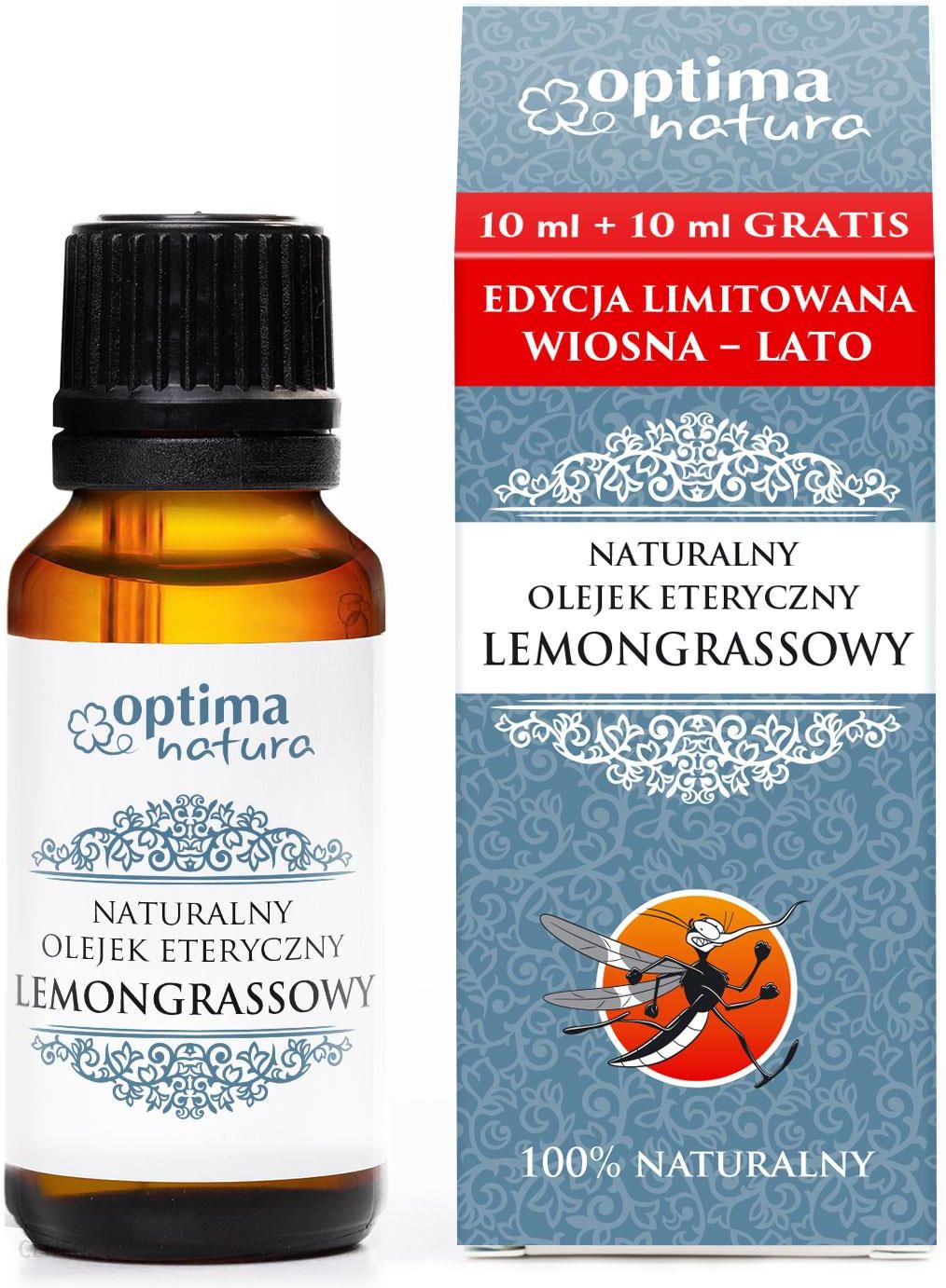 Naturalny olejek lemongrasowy z trawy cytrynowejTrawa cytrynowa (Cymbopogon citratus) nazywana jest też cytronelą lub palczatką cytrynową. Uzyskiwany z niej olejek jest niezwykle aromatyczny i orzeźwiający. Stanowi on częsty składnik kosmetyków takich jak dezodoranty lub sól do kąpieli. Dodatkowo jego intensywny zapach bardzo skutecznie odstrasza komary. Aromat olejku przywodzi na myśl orientalny, azjatycki klimat. To właśnie z Azji pochodzi ta niezwykła roślina, która kryje w sobie związki aromatyczne, które mają niezwykłe działanie na ludzki organizm. Poznaj moc olejku eterycznego z trawy cytrynowej, który możesz mieć teraz w swojej domowej apteczce.Olejek lemongrasowy skutecznie odstrasza owady!Zaletą olejku z trawy cytrynowej jest odstraszanie owadów. Przede wszystkim komarów, ale także insektów, takich jak wszy, pchły oraz kleszcze. Stosowanie olejku z trawy cytrynowej w sezonie letnim to doskonały i naturalny sposób na odstraszenie niemile widzianych insektów. Olejek eteryczny w swoim składzie zawiera tylko i wyłącznie związki aromatyczne pochodzenia naturalnego. Z uwagi na ich specyficzną budowę chemiczną są to substancje, które szybko się ulatniają. Aby olejek z trawy cytrynowej był skutecznym repelentem należy pamiętac o jego częstej aplikacji.Olejek z trawy cytrynowej właściwości:Antybakteryjne, Przeciwgrzybicze Przeciwpasożytnicze.Działa przeciwgorączkowo, niweluje stany zapalne, minimalizuje kaszel.Jest moczopędny, wiatropędny oraz pobudza apetytDziała uspokajająco i wyciszającoMedycy zwracają uwagę na fakt, że olejek z trawy cytrynowej to także naturalny znieczulacz.Działa nie tylko leczniczo, ale również kojąco i relaksująco. Bardzo często jest składnikiem preparatu wykorzystywanego w celu masażu, rozluźnia obolałe i spięte mięśnie. Do tego pobudza i wzmacnia tkankę mięśniową. Zalecany jest w ramach terapii po kontuzjach.Jak pachnie olejek z trawy cytrynowej?Olejek z trawy cytrynowej to lekki, orzeźwiający, przyjemnie cytrusowy i świeży zapach. Dzięki swojej świeżości chętnie wykorzystywany jest jako składnik antyperspirantów (dodatkowo niweluje nadmierne wydzielanie potu). Zapach olejku z trawy cytrynowej uznawany jest za lekki, ale jednocześnie wyrazisty. Jego wyrazistość warunkuje duża zawartość cytralu, którego zapach przypomina cytrynę.Jak stosować olejek z trawy cytrynowej?Najczęściej wykorzystuje się go w ramach aromaterapii – z wykorzystaniem nawilżacza powietrza, kominka aromatycznego bądź rozpylacza. Wystarczy 5 kropli olejku rozcieńczyć w 1 litrze wody.Olejek z trawy cytrynowej można również stosować na skórę, ale nigdy nie jako samodzielny preparat (może podrażniać skórę). Świetnie komponuje się z olejkiem z migdałów, taka mikstura będzie dobra do masażu.Olejków nie należy stosować do nebulizacji ( inhalacji z wykorzystaniem inhalatorów).Olejki eteryczne od Optima NaturaOlejki marki Optima Natura to w 100% naturalne olejki eteryczne o najwyższej aptecznej jakości.Polecane do aromaterapii tj. używając dyfuzora, kominka zapachowego, w kąpieli i masażu aromaterapeutycznym.Oferta olejków eterycznych zawiera pojedyncze olejki eteryczne o pojemności 10ml i ekonomicznej 30ml m.in.: olejek lawendowy, olejek eukaliptusowy, olejek z drzewa herbacianego, sosnowy czy pomarańczowy oraz autorskie mieszanki olejków np. Olejek Złodziei ,oraz zestawy olejków eterycznych idealne na prezent.Aromaterapia z wykorzystaniem aptecznych olejków Optima Natura jest sposobem na poprawę samopoczucia i nastroju.Z uwagi na swoje działanie terapeutyczne olejków są one również wykorzystywane wspomagająco w leczeniu różnych dolegliwosći. SKU: TOW018723Kod EAN: 5904730293549Kategoria SAP: Olejki kosmetyczneMarka: OPTIMA NATURAStawka podatku: VAT 23%
