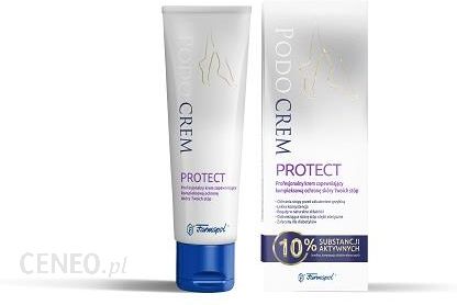 Podocrem Protect regeneruje oraz chroni przed grzybicą.Skład:INCI: Aqua, Propylene Glycol, Isopropyl Myristate, Cetearyl Alcohol, Lanolin, Paraffinum Liquidum, Glyceryl Stearate Citrate, Camphor, Menthol, Salvia Officinalis Oil, Cymbopogon Flexuosus Oil, Eucalyptus Globulus Leaf Oil, Lavandula Angustifolia Oil, Rosmarinus Officinalis Leaf Oil, Thymus Vulgaris Leaf Oil, Glyceryl Caprylate, Limonene, Linalool, Buthylphenyl Methylpropional, Eugenol, Citral, Geraniol.Właściwości i działanie:Profesjonalny krem zapewniający kompleksową ochronę skóry Twoich stóp.Ochrania stopy przed zakażeniem grzybicą.Lekka konsystencja.Bogaty w naturalne składniki.Odświeżające skórę stóp olejki eteryczne.Zalecany dla diabetyków.Zastosowanie:Podocrem Protect to krem stworzony z myślą o kompleksowej ochronie stóp przed niekorzystnymi czynnikami atmosferycznymi i mikrobiologicznymi, takimi jak spory grzybów, wirusy brodawczaka wywołującego kurzajki. Dodatkowo krem powleka skórę stóp, zabezpieczając przed powstawaniem odcisków, modzeli, nagniotków i otarć naskórka. Takie działanie sprawia, że jest to krem idealny przed wyjściem na plażę, basen lub w okresie letnim w sandałach. Zimą dobroczynne olejki eteryczne poprawiają mikrokrążenie, chroniąc skórę przed marznięciem i wysuszeniem. Lekka, szybko wchłaniająca się formuła pozwala na swobodne zastosowanie kremu o każdej porze dnia.Sposób użycia:Krem nanieść na całą powierzchnię stopy i wmasować, nie omijając powierzchni między palcami. Stosować zawsze przed narażeniem stóp na negatywne czynniki zewnętrzne.Pojemność opakowania:75g.Producent:Zakład Chemiczno-Farmaceutyczny Farmapol Sp. z o.o.ul. Św. Wojciech 29, 61-749 Poznań