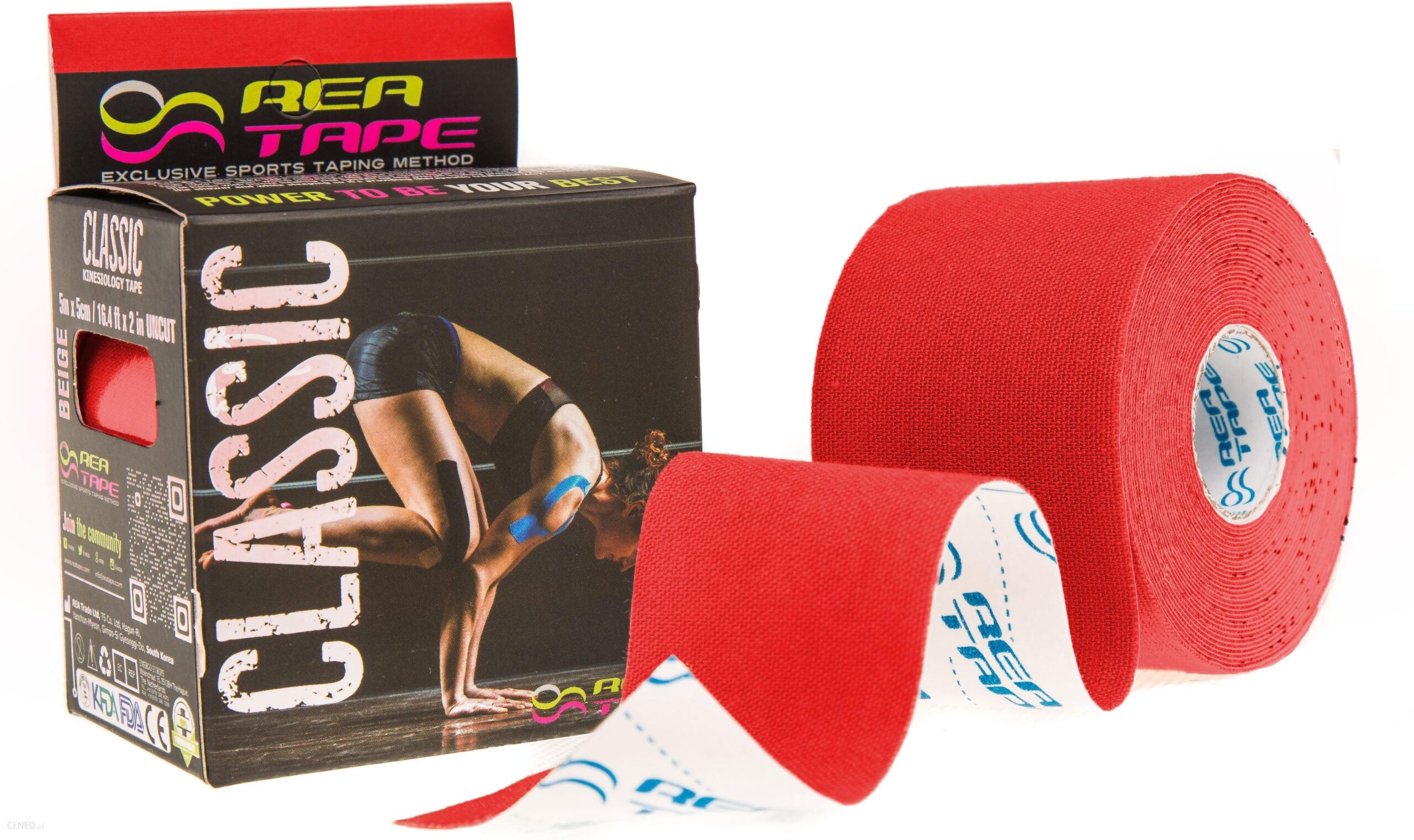 REA TAPE CLASSICWykonane z wysokiej jakości bawełny z warstwą kleju akrylowego klasy medycznej nałożonego na taśmę w niepowtarzalny, sinusoidalny wzór. Ich grubość ciężar właściwy i rozciągliwość ( w zakresie 130-140%) są zblizone do parametrów ludzkiej skóry.Dane produktu:– Szerokość: 5 cm– Długość: 5 m– Materiał: tkanina bawełniano – akrylowa– Nie zawiera lateksu i substancji leczniczych– Wytrzymałość kleju: do 5 dni na skórze– Przepuszczalne dla powietrza i hipoalergiczne– Wodoodporne– Elastyczność 130-140%
