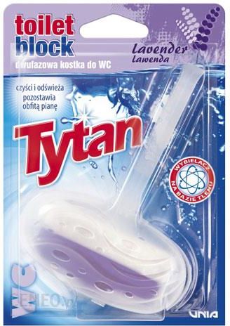 Dwufazowa kostka do WC Tytan przeznaczona jest do urządzeń sanitarnych.Specjalnie dobrana kompozycja składników pozwala na osiągnięciepotrójnego działania. Kostka czyści, odświeża i pozostawia obfitą pianę.